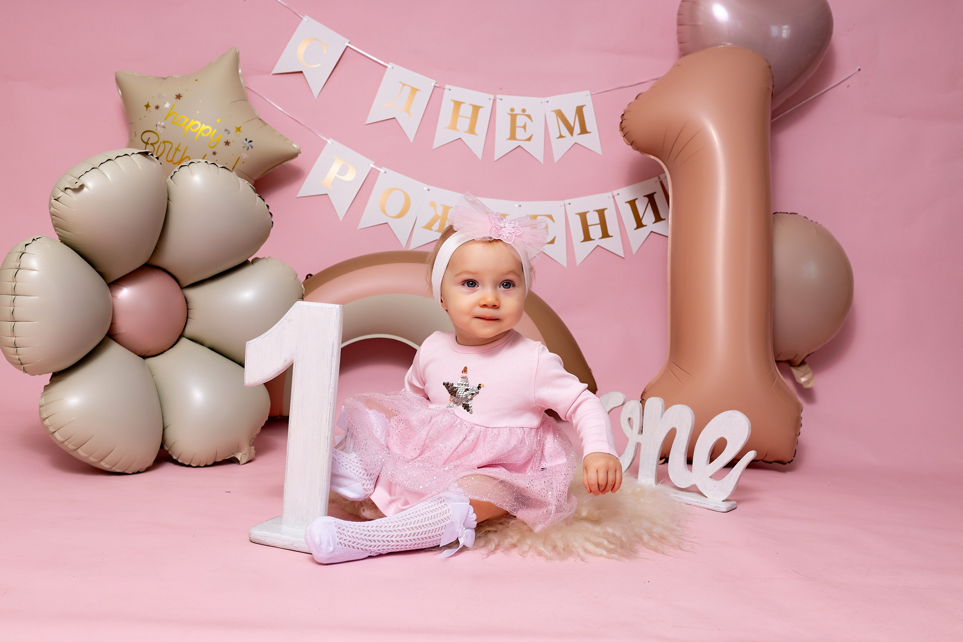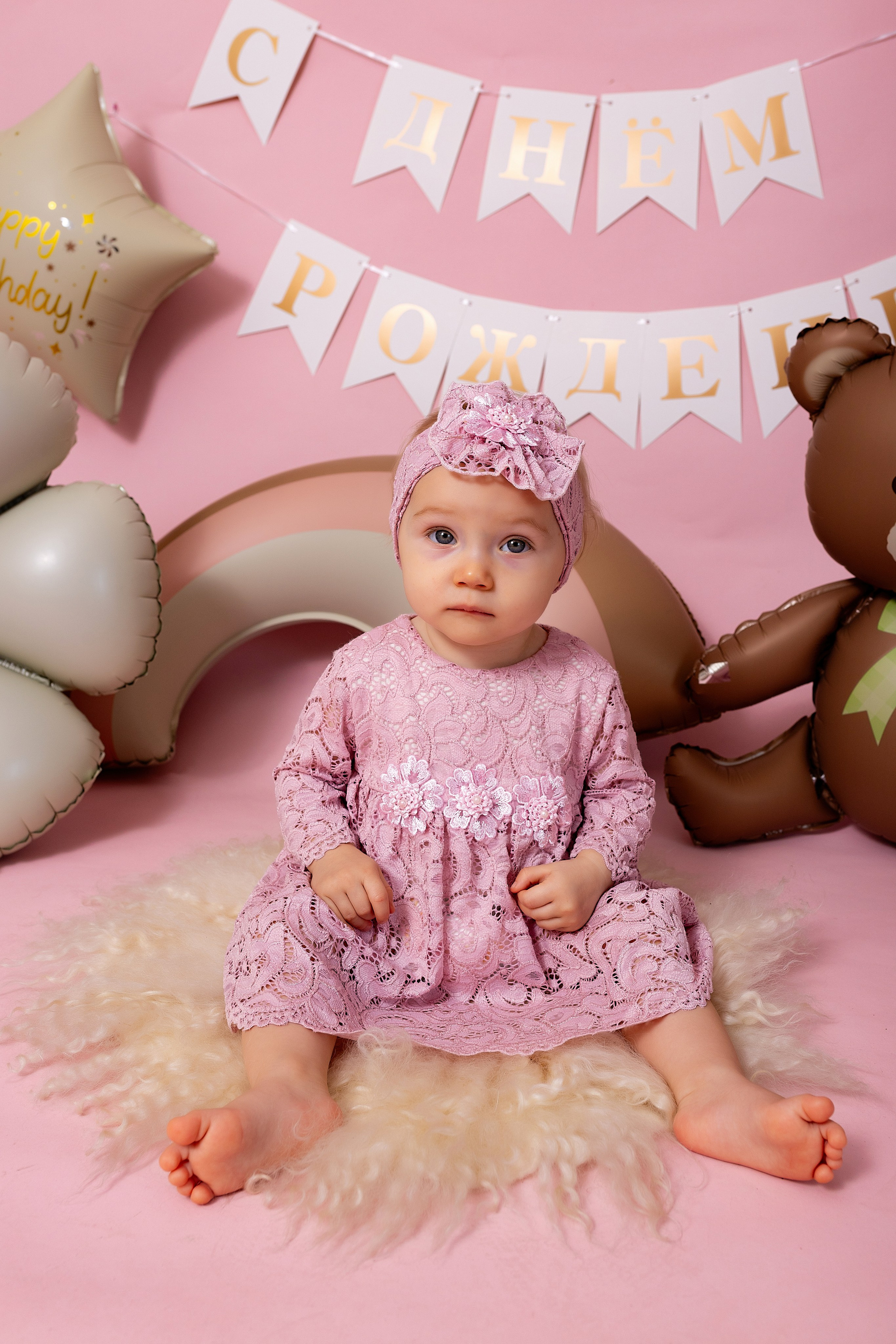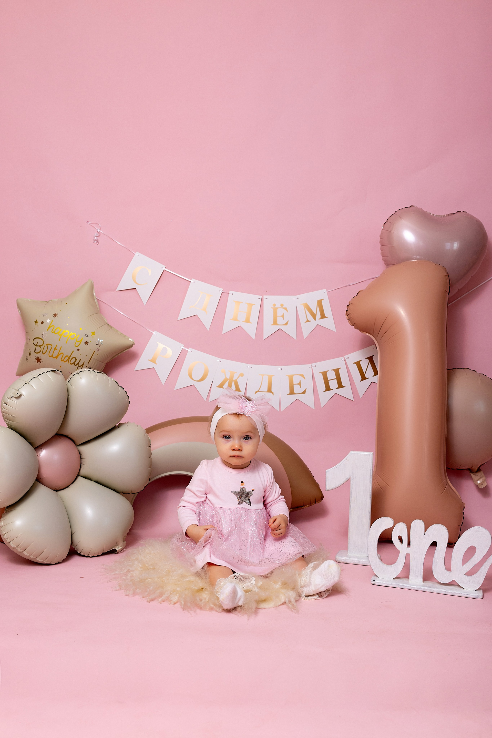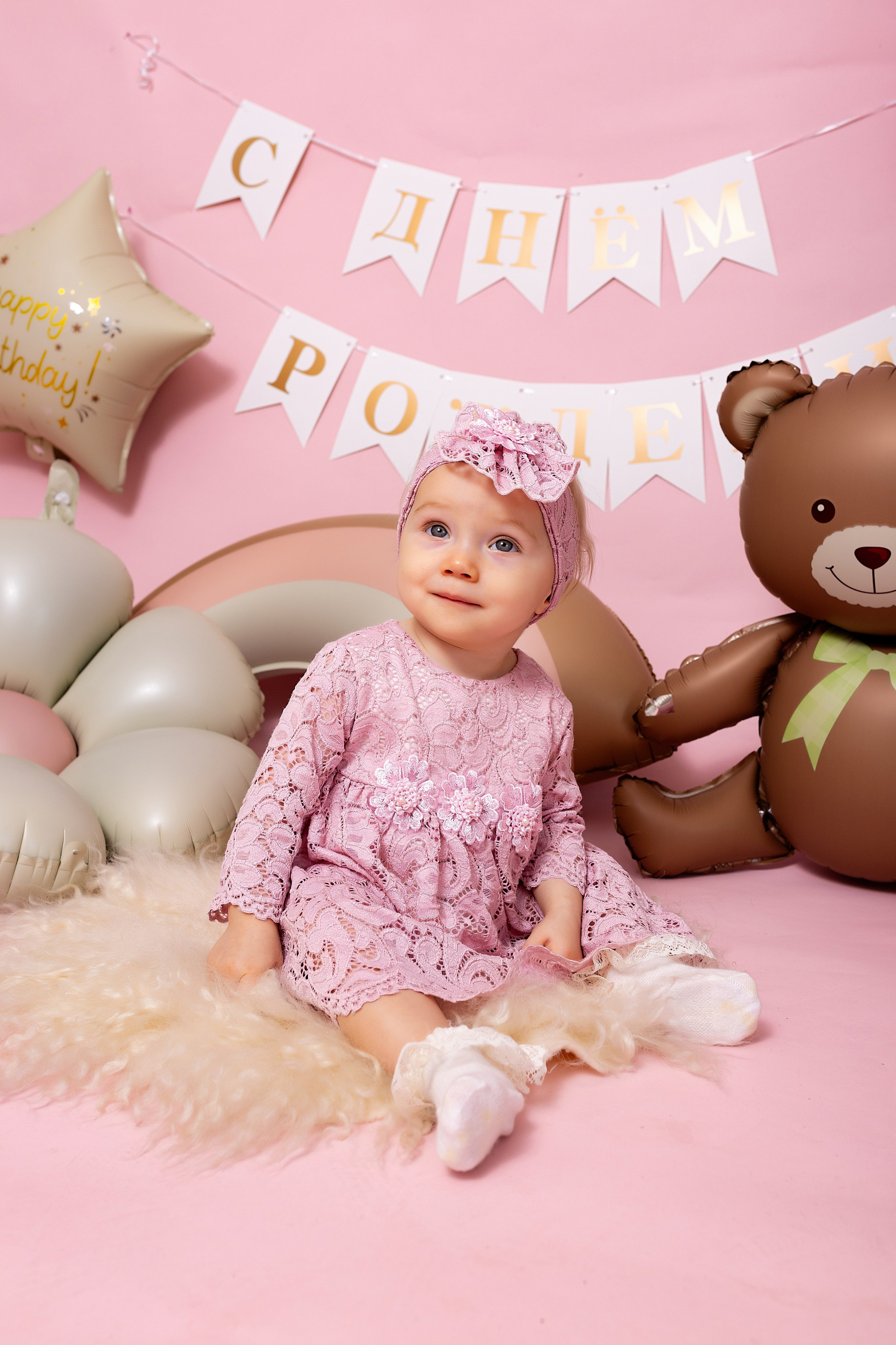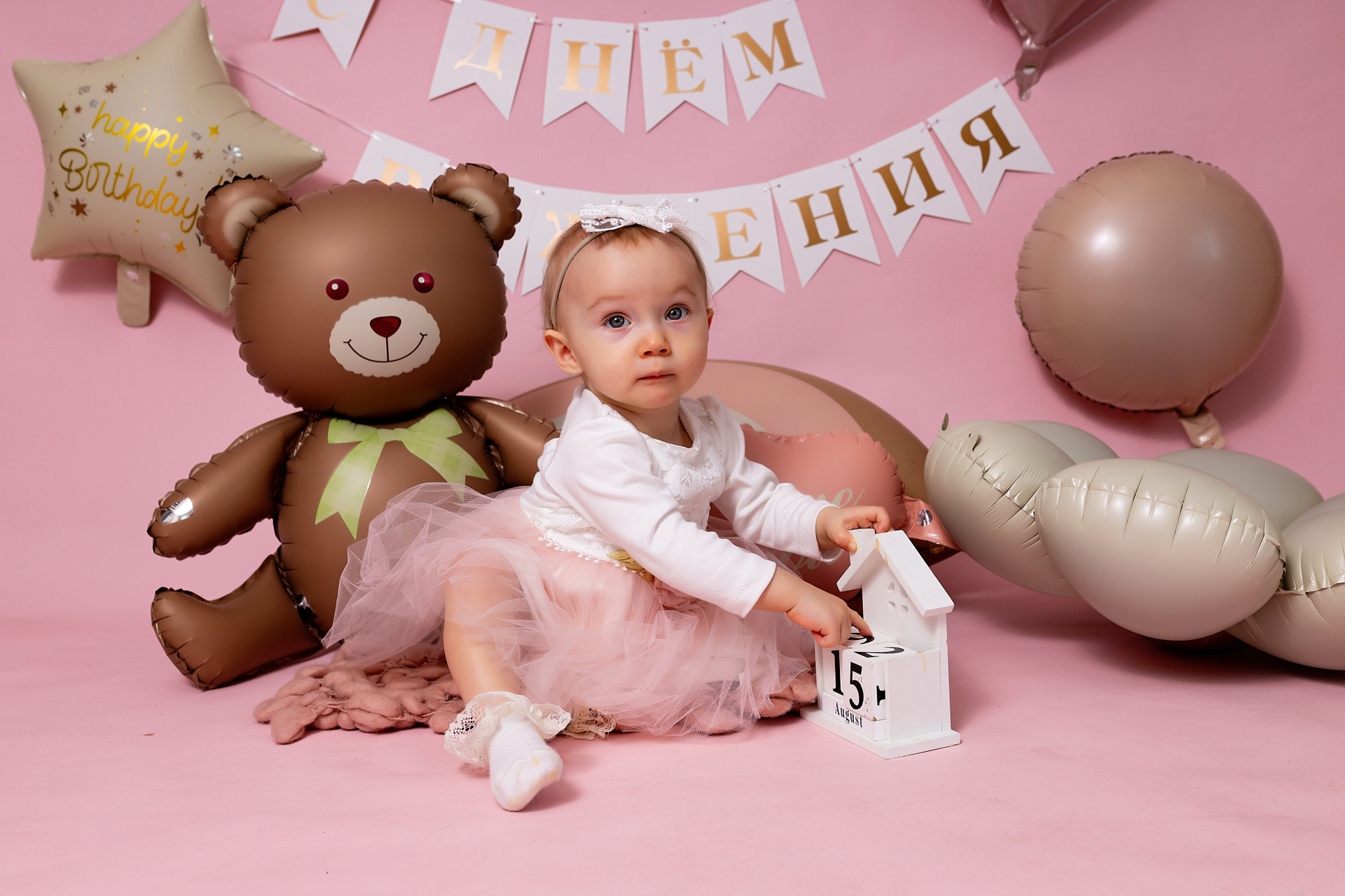 У меня в фотостудии в Железнодорожном есть проект «Праздник под ключ». Он идеально подходит для съемки годовасия! Мои партнёры заранее привозят в студию декор и торт, в выбранной цветовой гамме. А после съемки их можно забрать домой. Когда вы приходите на фотосессию дня рождения, студия превращается в праздник, в калейдоскоп счастливых мгновений. Видео с праздничной съемки я делаю для вас в подарок!