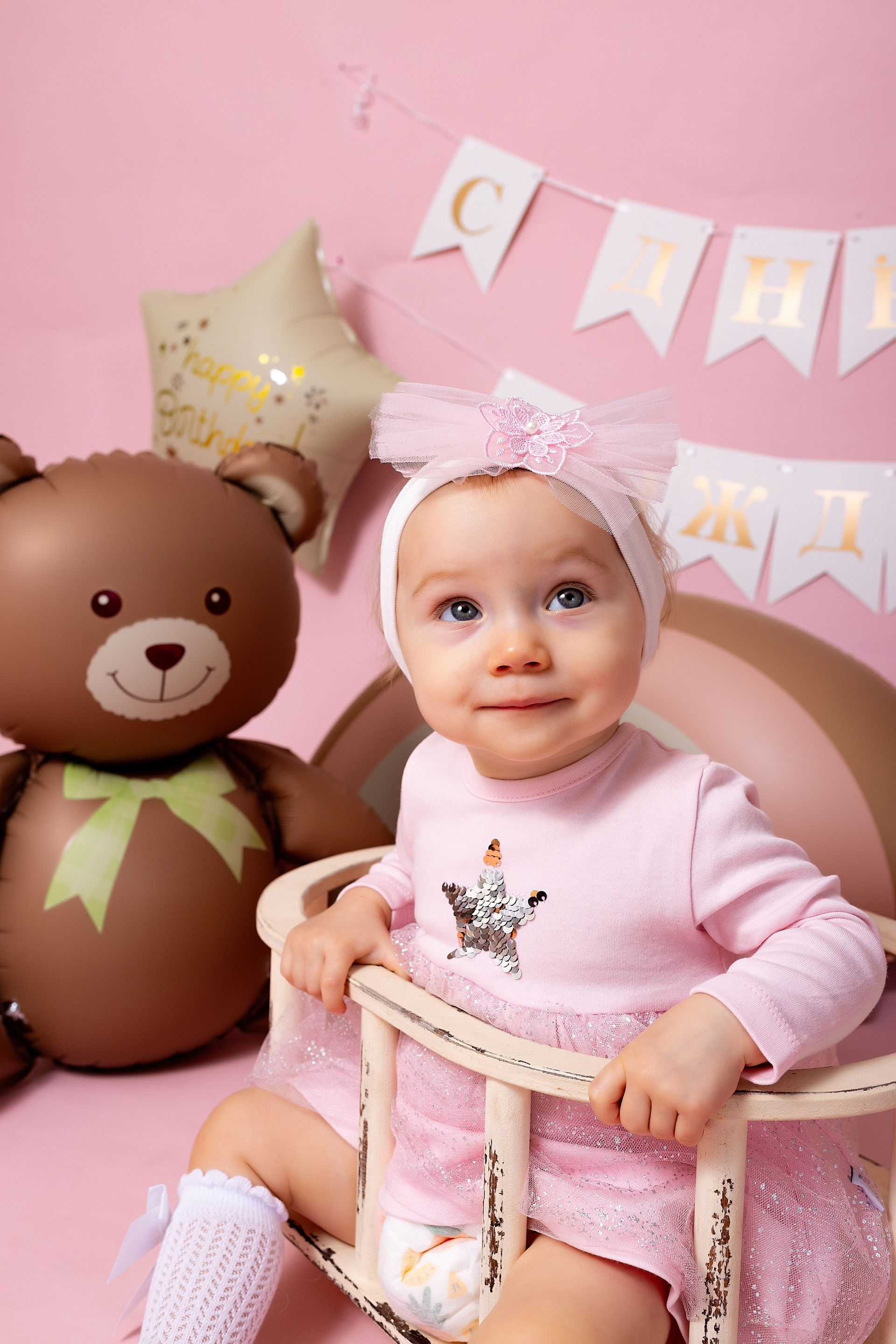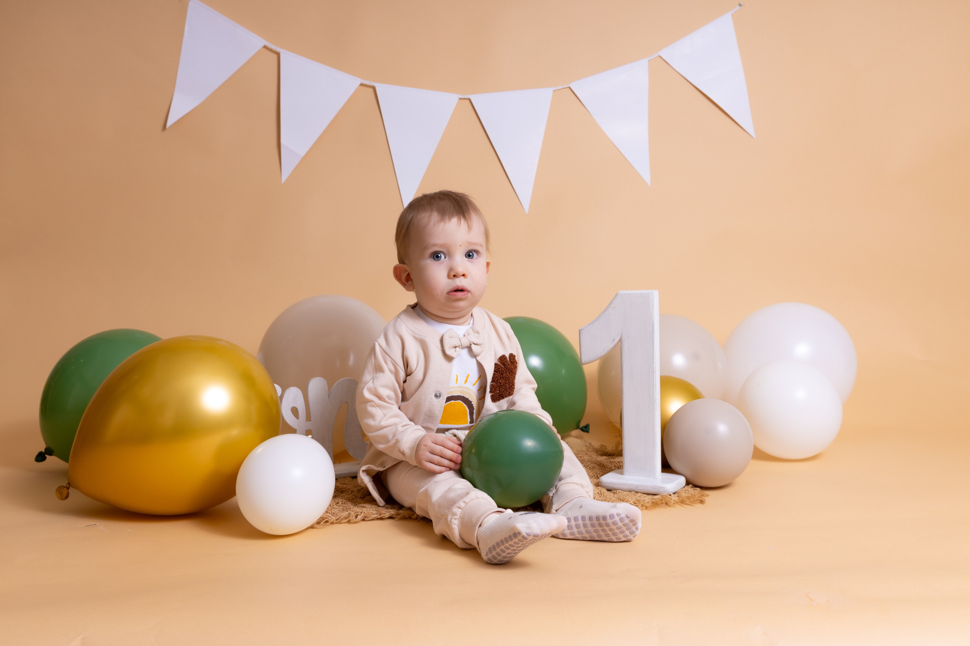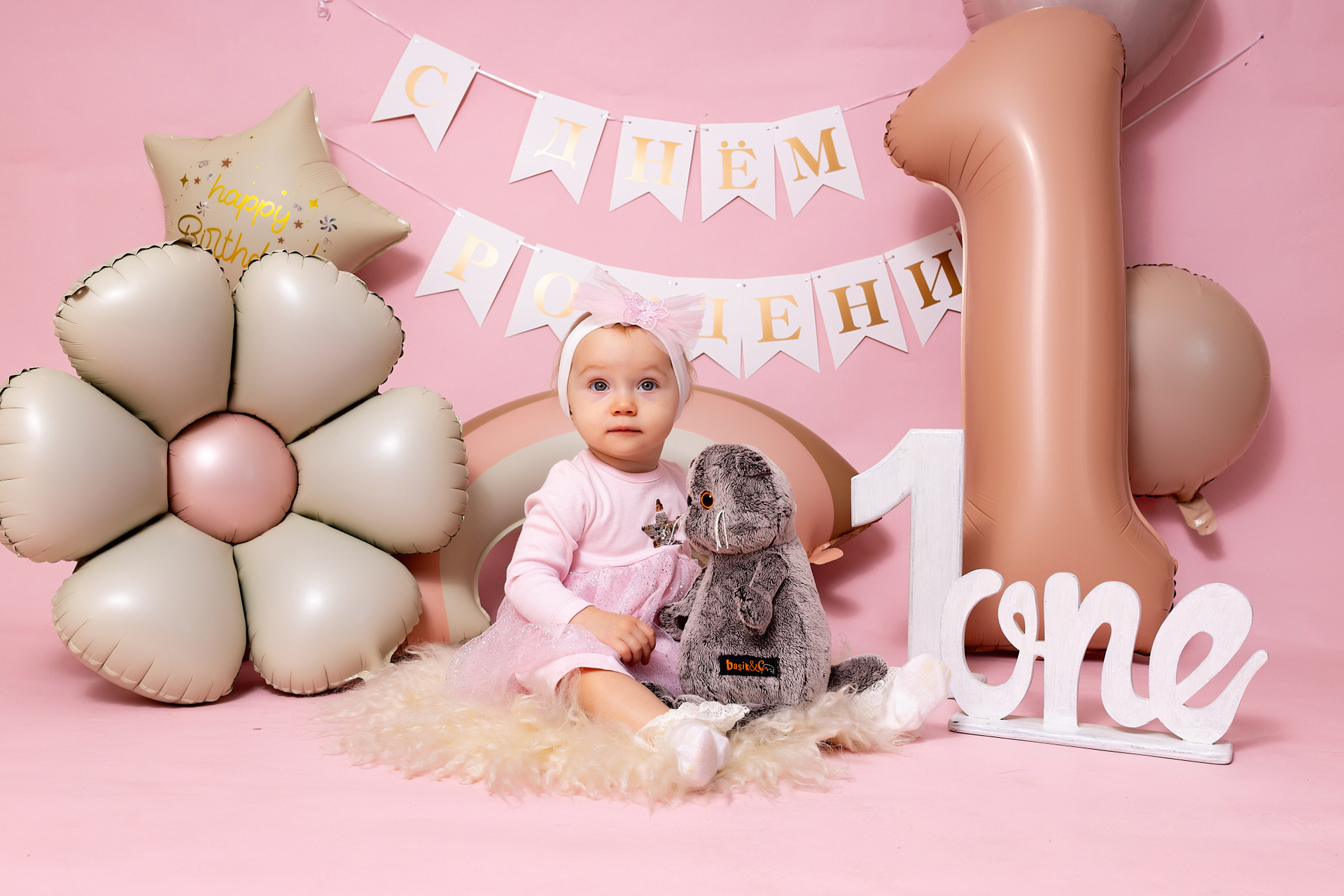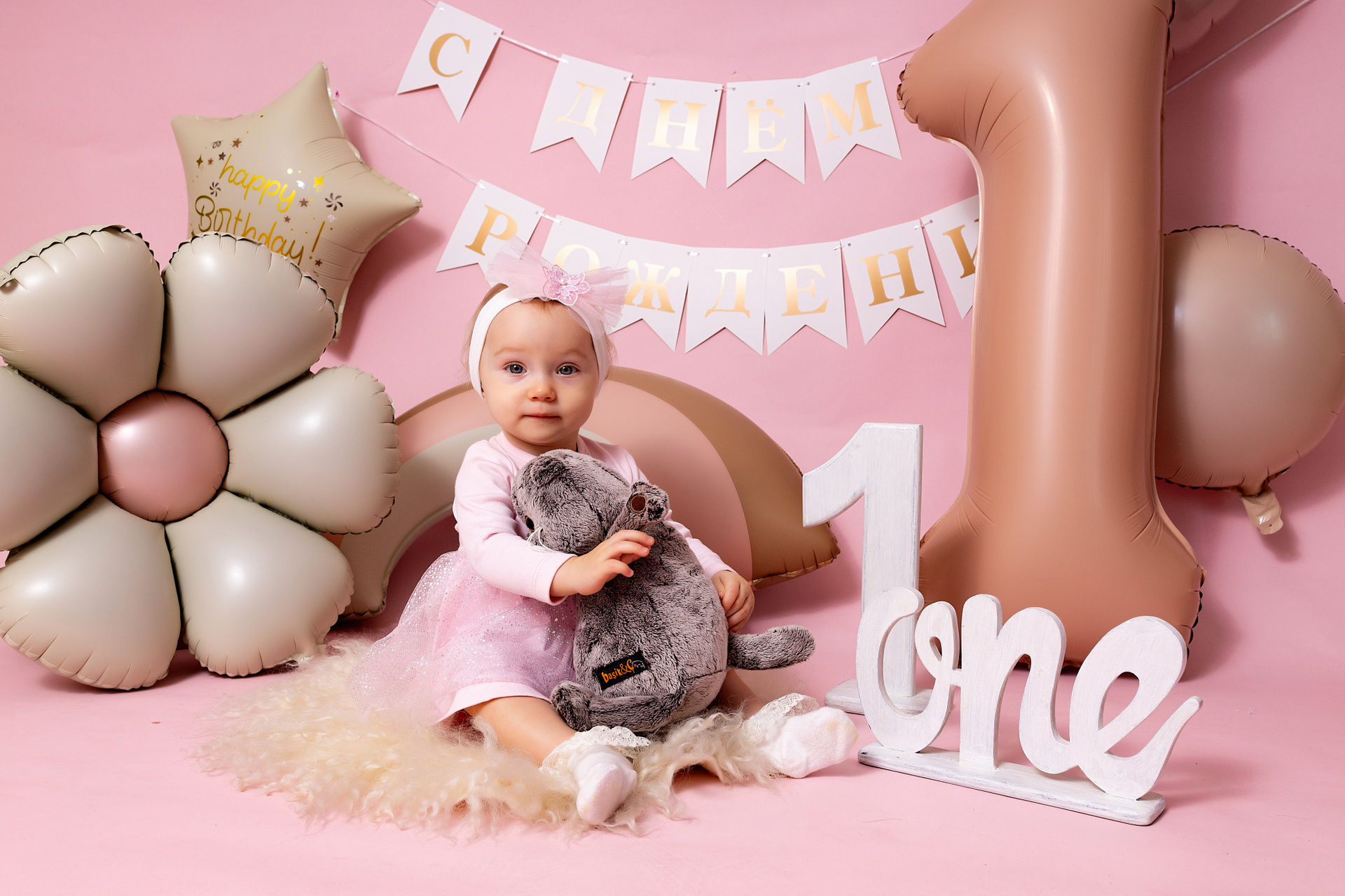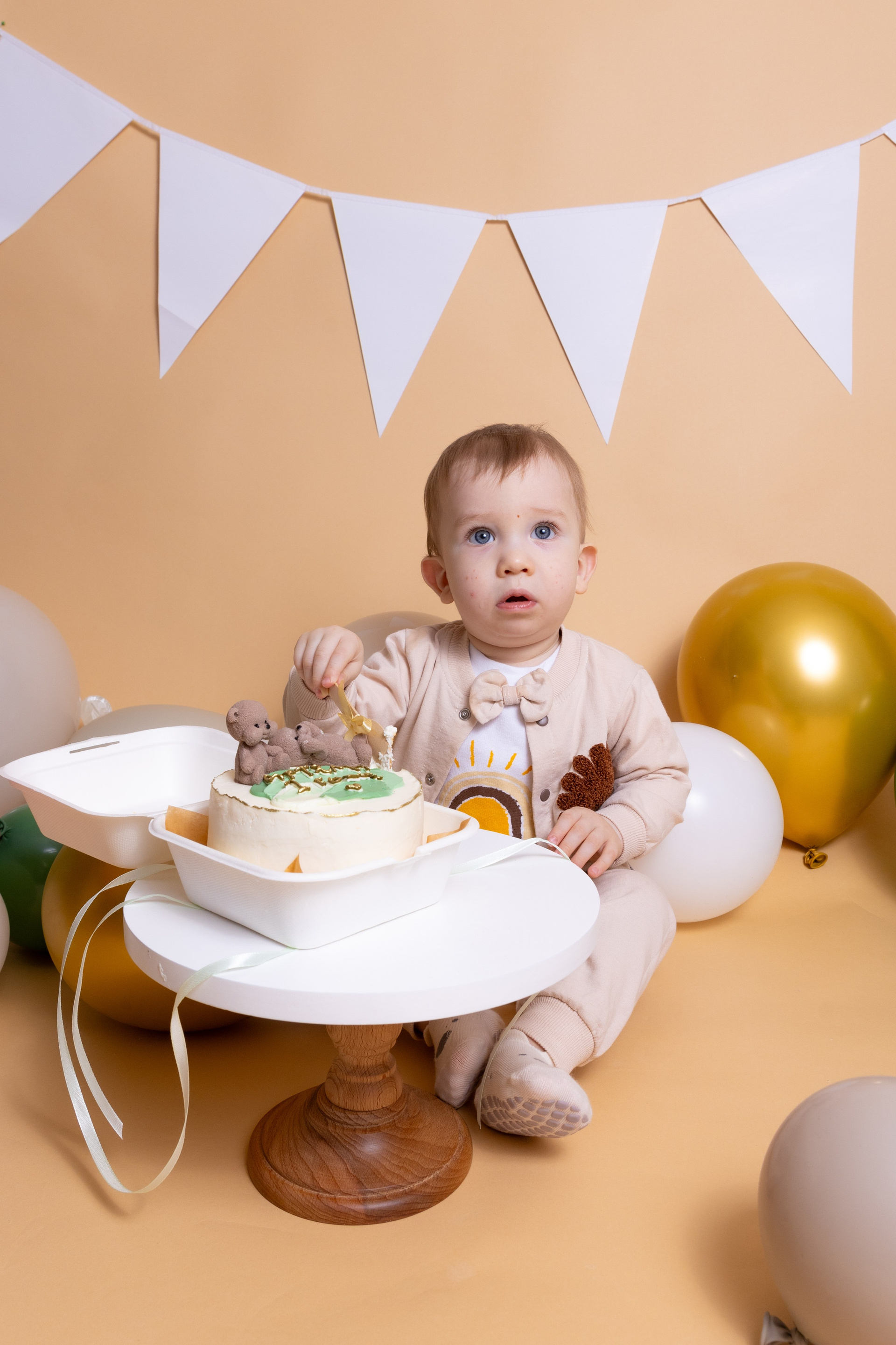 У меня в фотостудии в Железнодорожном есть проект «Праздник под ключ». Он идеально подходит для съемки годовасия! Мои партнёры заранее привозят в студию декор и торт, в выбранной цветовой гамме. А после съемки их можно забрать домой. Когда вы приходите на фотосессию дня рождения, студия превращается в праздник, в калейдоскоп счастливых мгновений. Видео с праздничной съемки я делаю для вас в подарок!