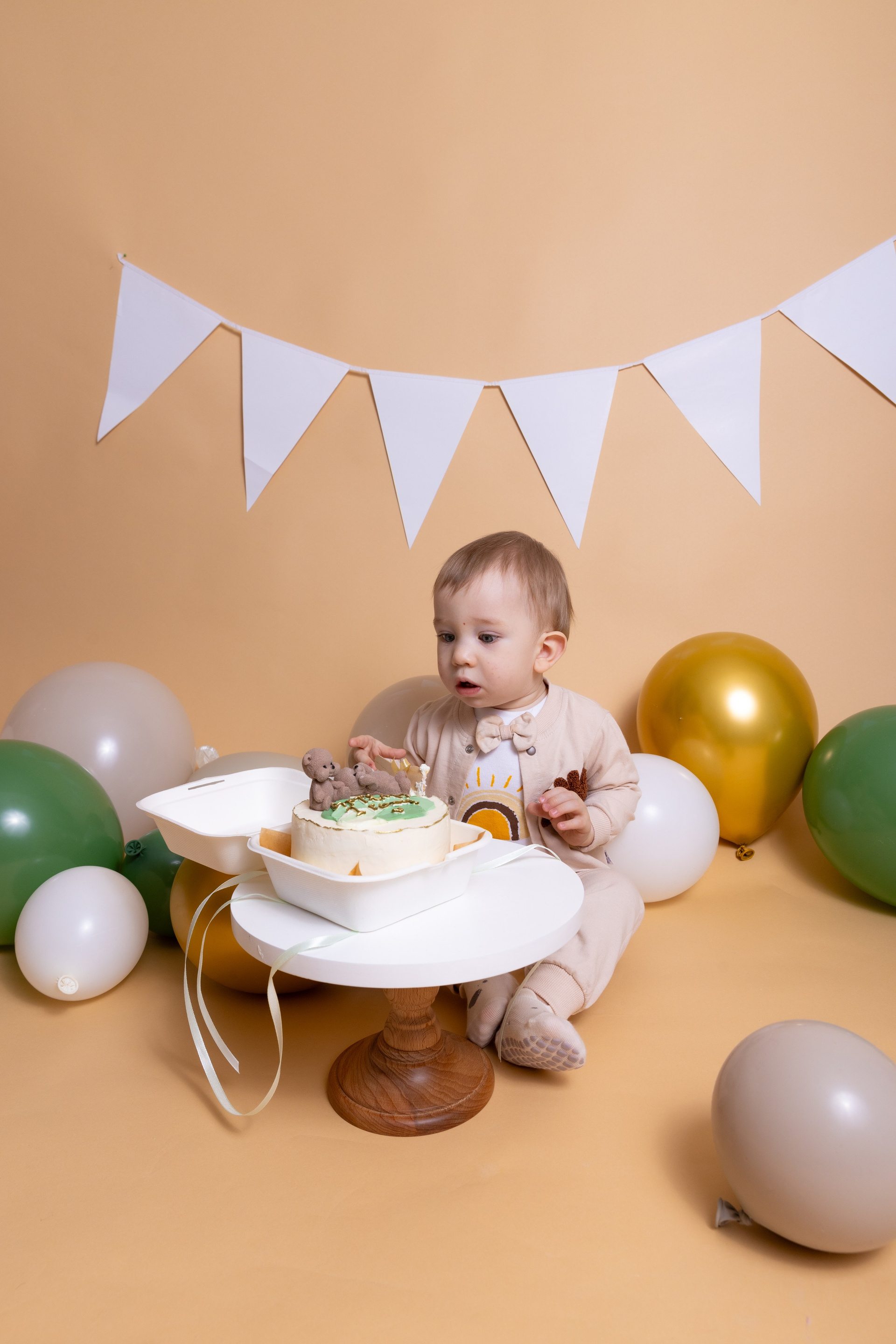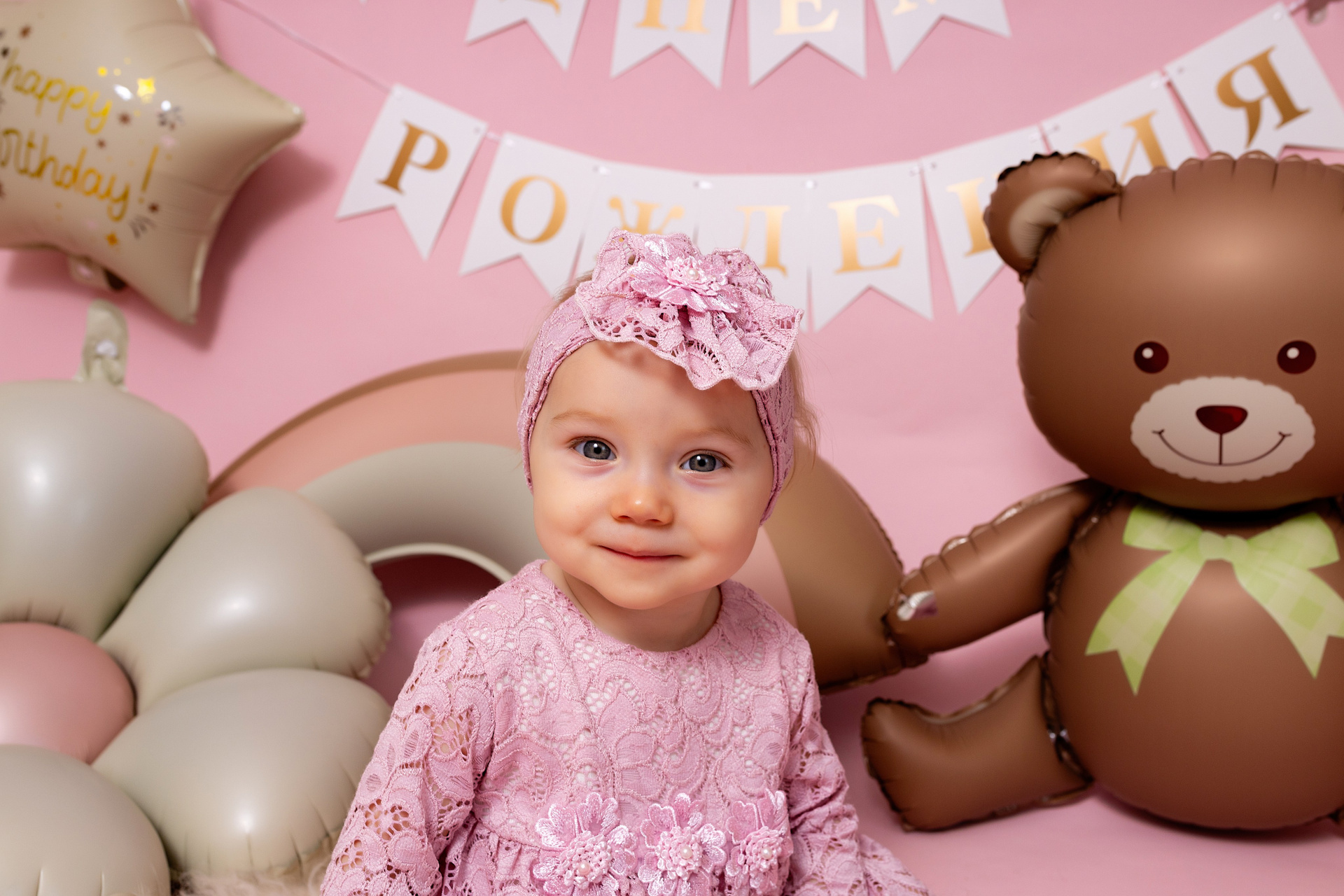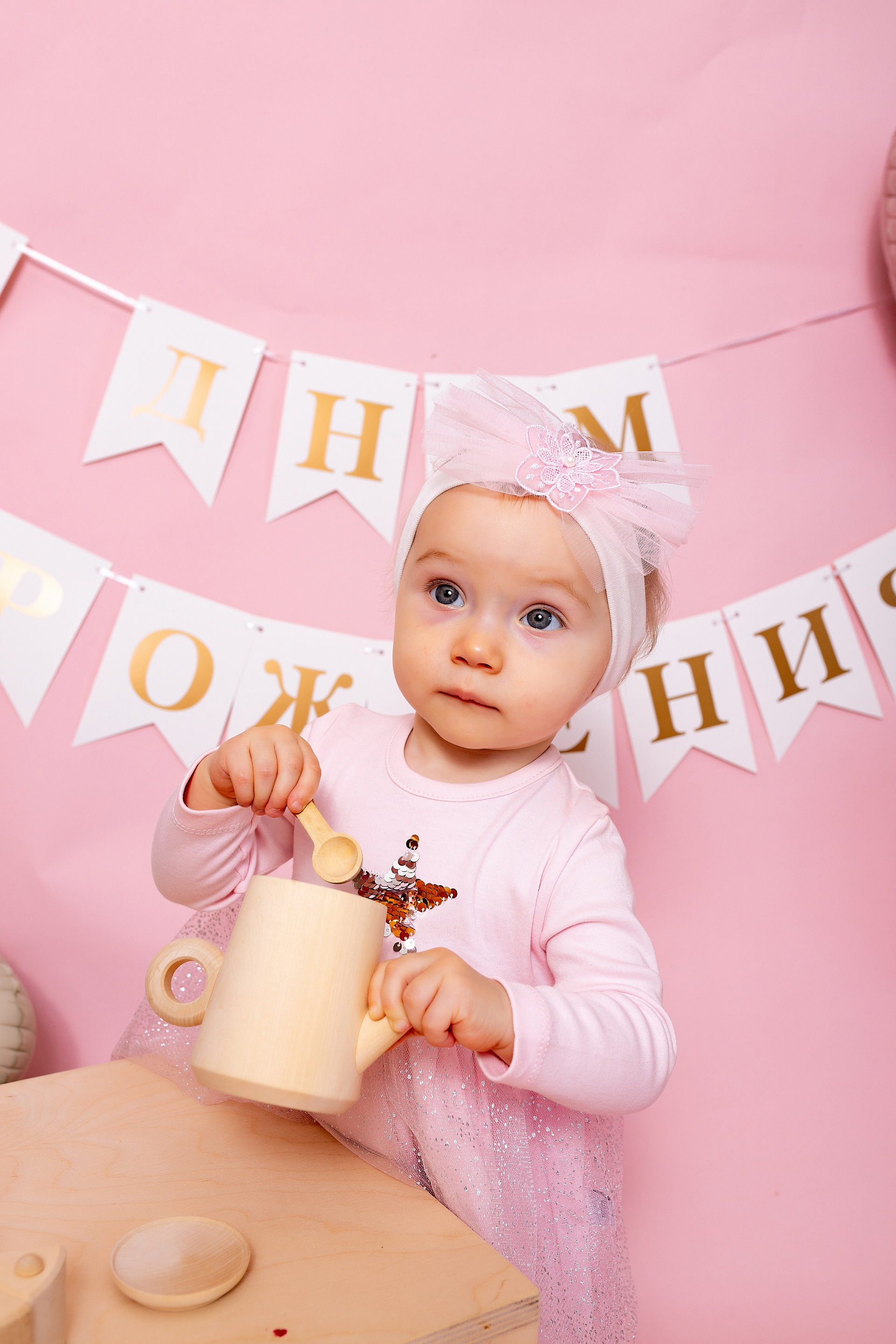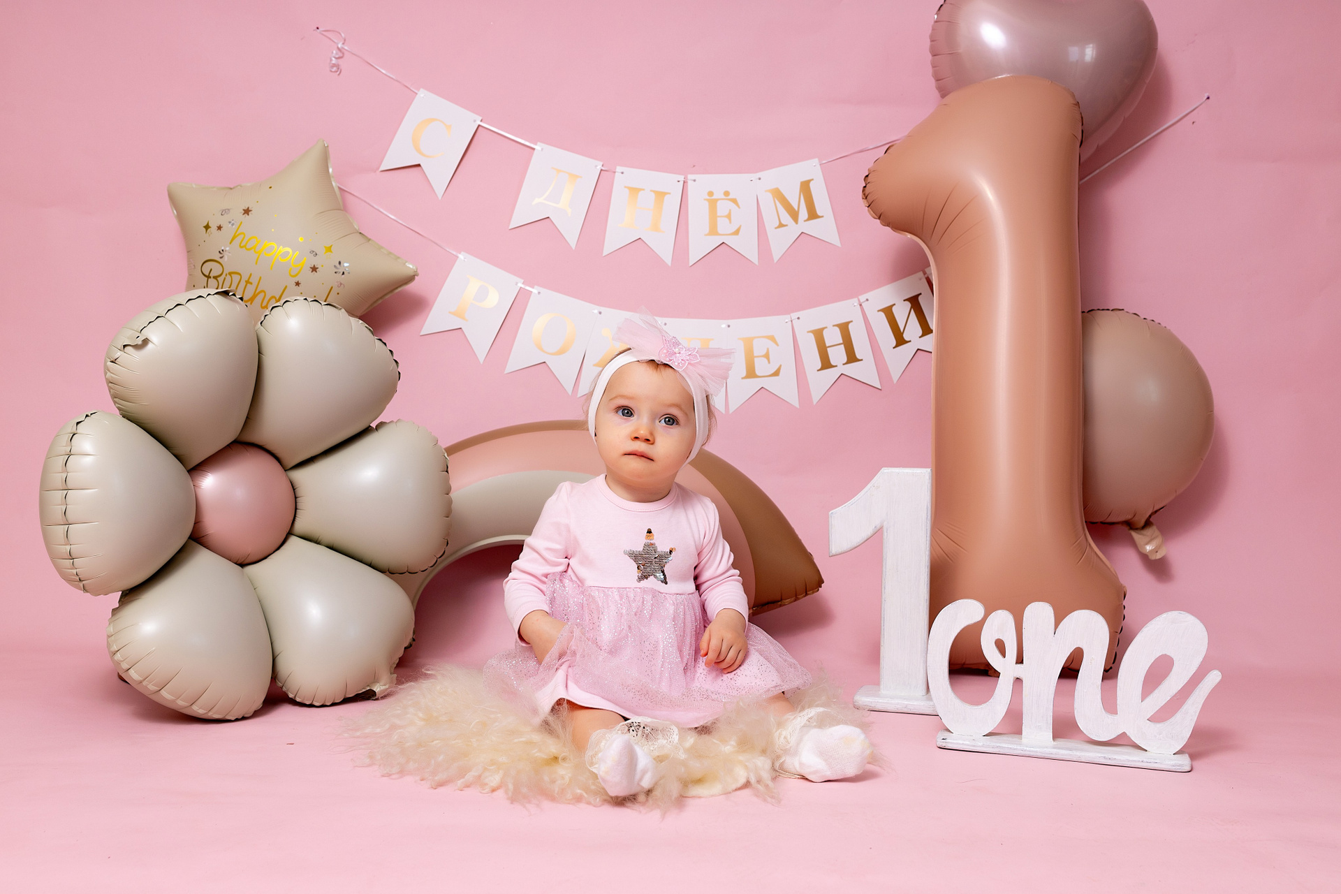 У меня в фотостудии в Железнодорожном есть проект «Праздник под ключ». Он идеально подходит для съемки годовасия! Мои партнёры заранее привозят в студию декор и торт, в выбранной цветовой гамме. А после съемки их можно забрать домой. Когда вы приходите на фотосессию дня рождения, студия превращается в праздник, в калейдоскоп счастливых мгновений. Видео с праздничной съемки я делаю для вас в подарок!