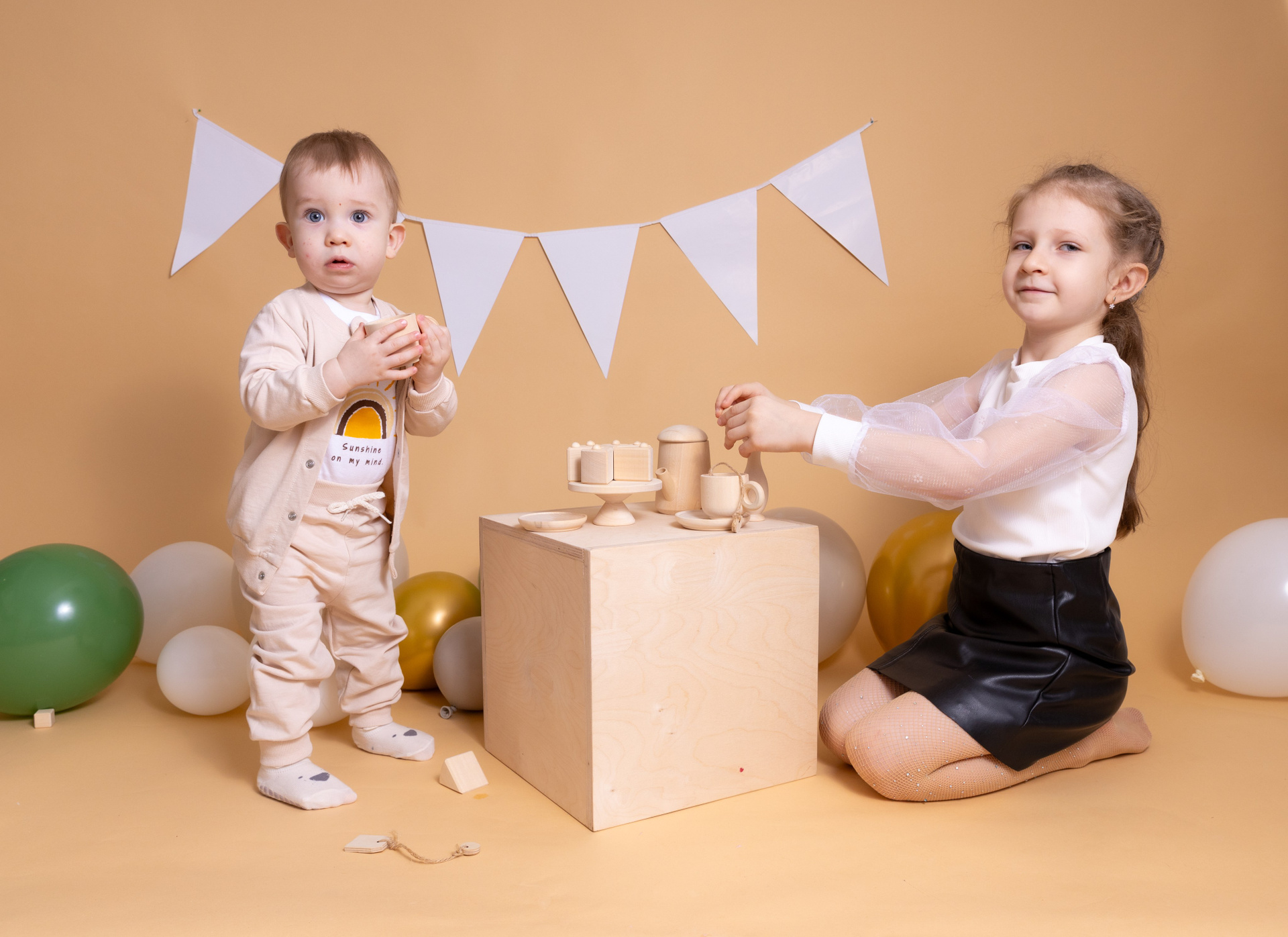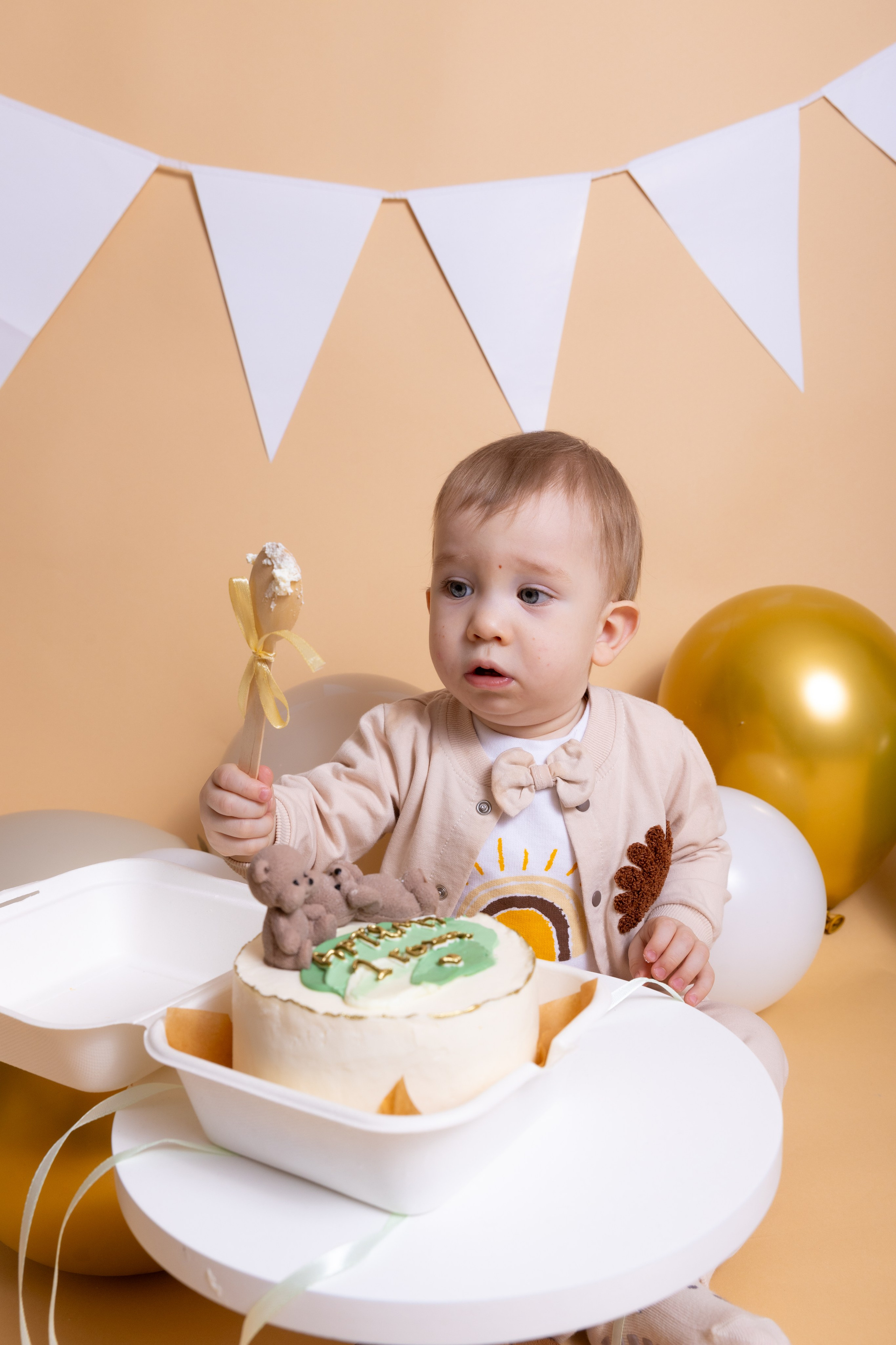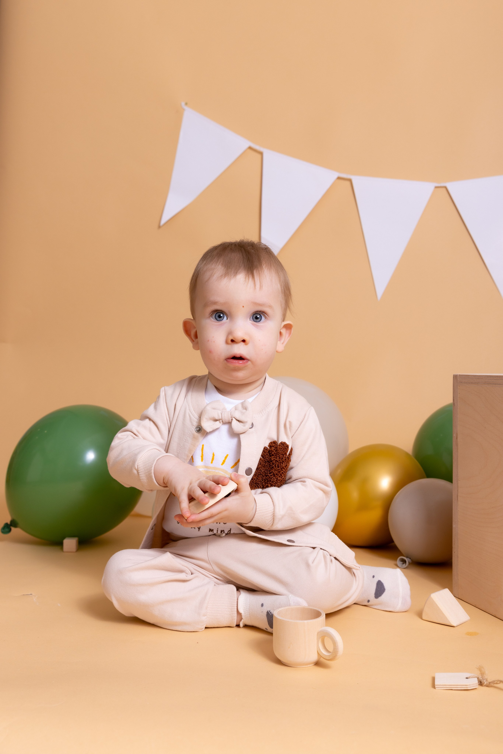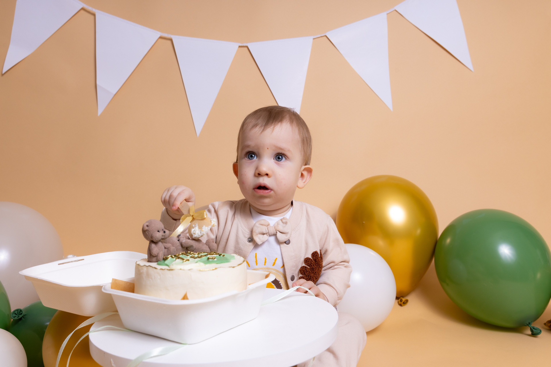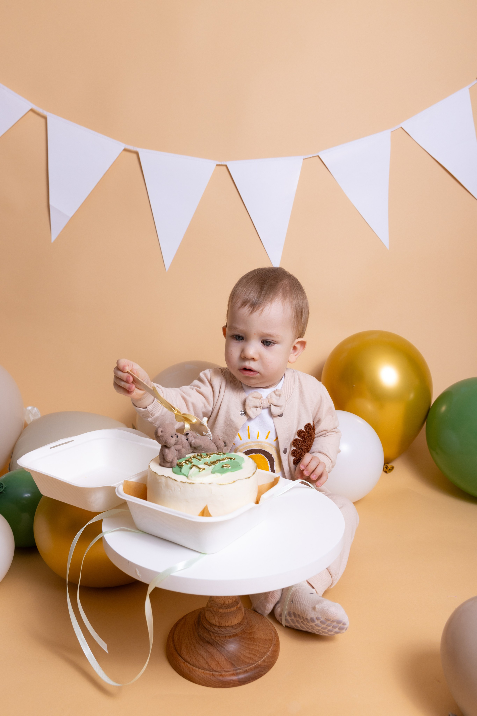 У меня в фотостудии в Железнодорожном есть проект «Праздник под ключ». Он идеально подходит для съемки годовасия! Мои партнёры заранее привозят в студию декор и торт, в выбранной цветовой гамме. А после съемки их можно забрать домой. Когда вы приходите на фотосессию дня рождения, студия превращается в праздник, в калейдоскоп счастливых мгновений. Видео с праздничной съемки я делаю для вас в подарок!